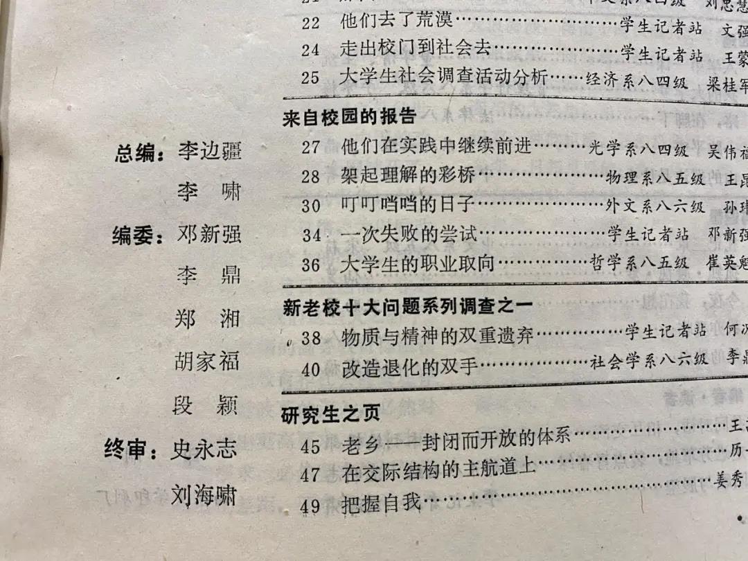 二是专心读书。二年级的时候,我把社团之类的活动全部都停掉了,专心上课和学习,并且靠读书、靠成绩获得了校级“三好学生”,当时还发了30块钱的奖金(笑),那个证书我现在还留着。我在学校团委还主编过《青年园》,一九八七年第8期,上面还有我和很多好朋友的文章,这些可以作为社团活动的一个巅峰之作,那么这边的荣誉证书可以作为在学校好好读书的一个代表作。