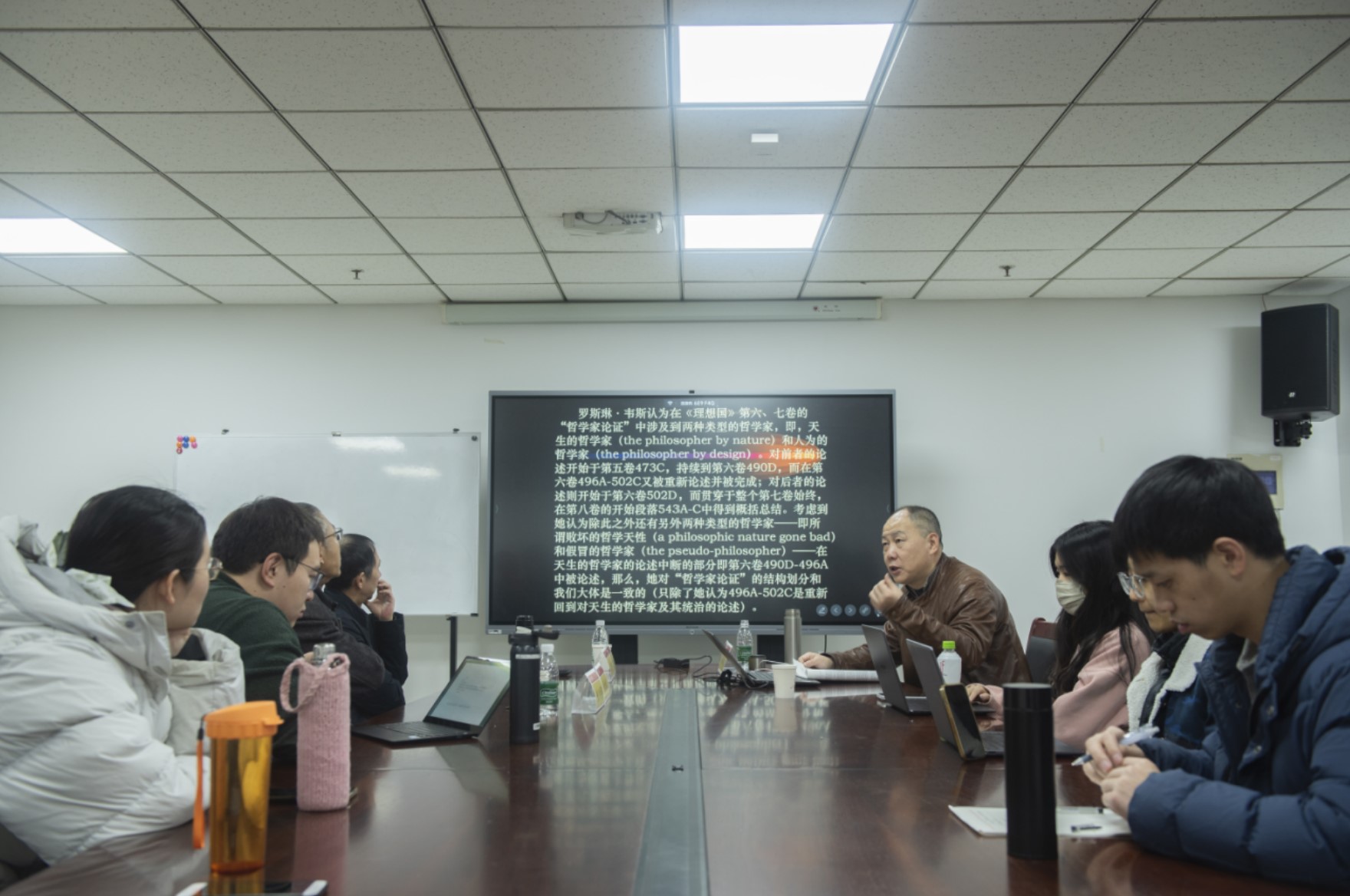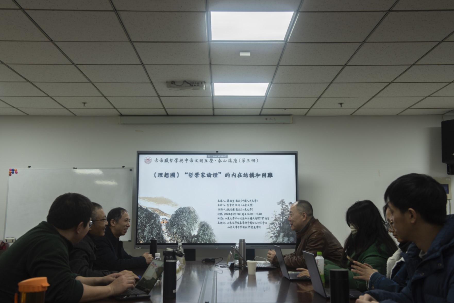 在知新楼A座1721会议室举办“古希腊哲学与中希文明互鉴”泰山讲座(第三回)。本次讲座邀请中国人民大学聂敏里教授做学术报告,报告题目是《<理想国>中哲学家论证的内在结构和困难》。讲座由李章印教授主持,陈治国教授担任评论人。