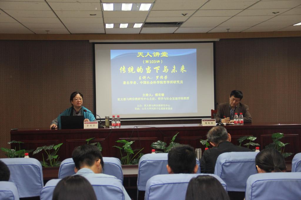 10月16日,中国社会科学院哲学所研究员、《哲学研究》编审罗传芳做客第103讲“天人讲堂”,作了题为“传统的当下与未来”的学术报告。