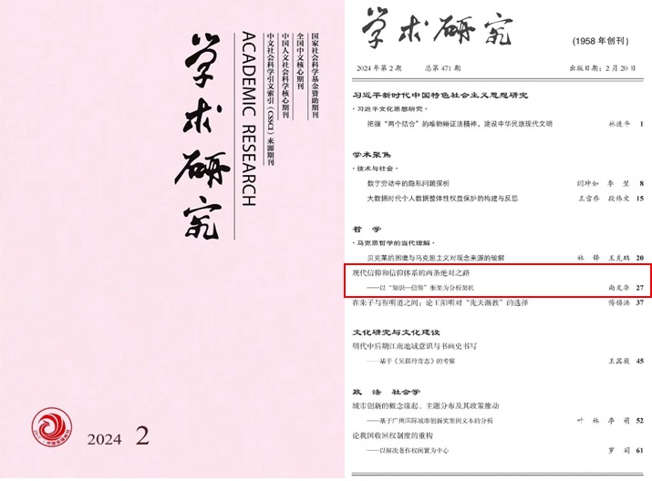 尚文华教授所撰写的《现代信仰和信仰体系的两条绝对之路——以“知识—信仰”框架为分析契机》一文在《学术研究》2024年第2期发表。