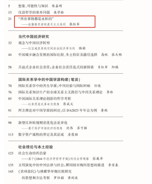 副研究员张红军在《学术月刊》2024年第5期上发表了题为《“所有事物都是永恒的”——论塞维里诺的虚无主义批判》的高质量学术论文。