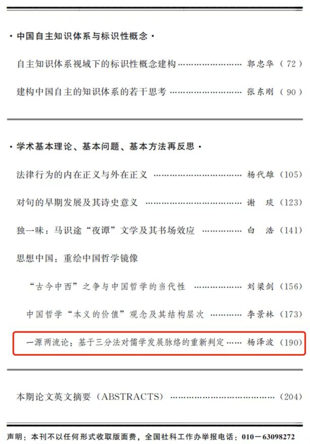 易学与中国古代哲学研究中心杨泽波教授撰写的《一源两流论:基于三分法对儒学发展脉络的新判定》一文在《中国社会科学》2024年第5期发表,全文16000字。