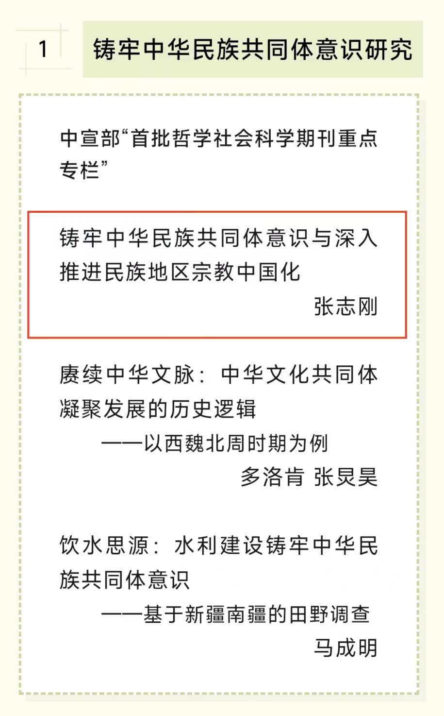 犹太教与跨宗教研究中心张志刚教授在《西北民族研究》2024年第4期上发表了题为《铸牢中华民族共同体意识与深入推进民族地区宗教中国化》的高质量论文。