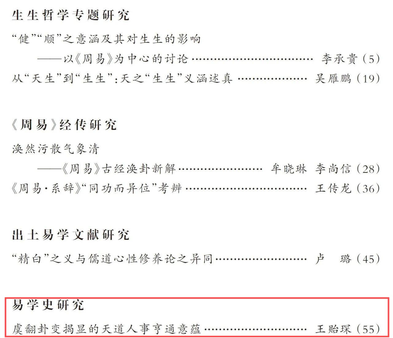 易学与中国古代哲学研究中心助理研究员王贻琛在《周易研究》2024年第6期上发表了题为《虞翻卦变揭显的天道人事亨通意蕴》的高质量论文。