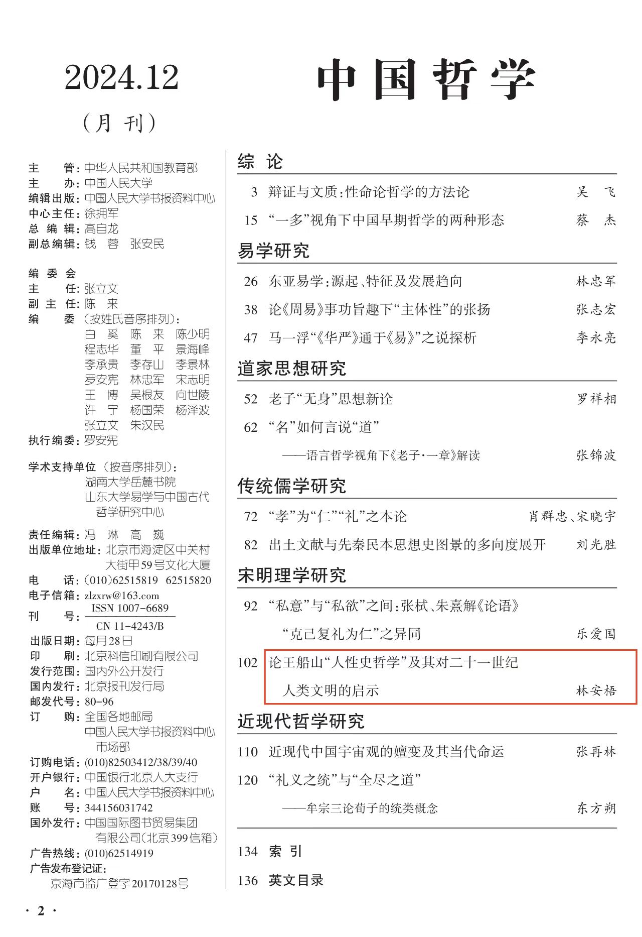 易学与中国古代哲学研究中心林安梧教授的题为《论王船山“人性史哲学”及其对二十一世纪人类文明的启示》的高质量论文。