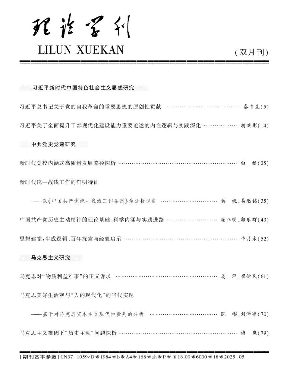 姜涌教授与其博士研究生崔健民共同在《理论学刊》2025年第3期发表了题为《马克思对“物质利益难事”的正义诉求》的高质量论文。