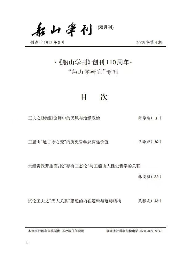 易学与中国古代哲学研究中心特聘教授林安梧在《船山学刊》2025年第4期上发表了题为《六经责我开生面:论“存有三态论”与王船山人性史哲学的关联》的高质量论文。