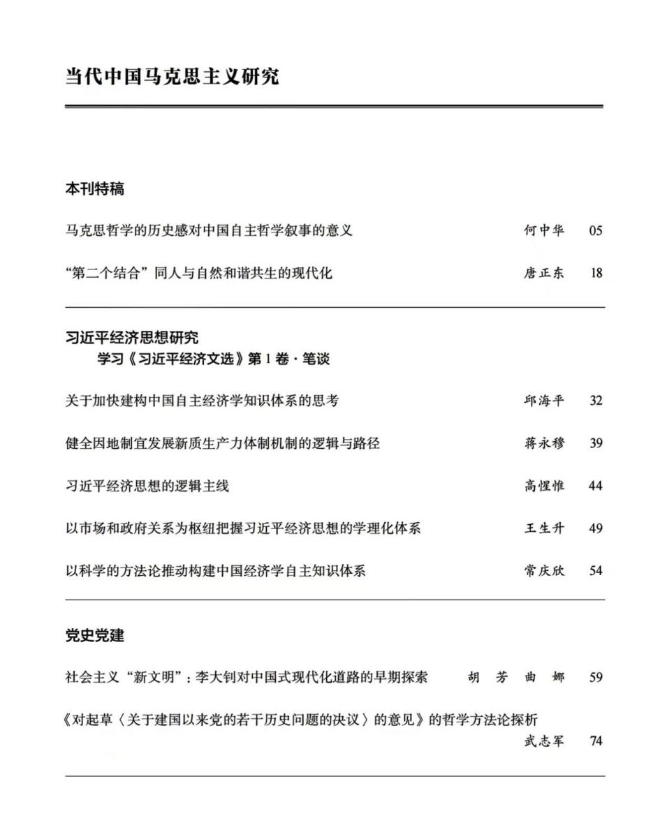 何中华教授在《当代中国马克思主义研究》2025年第10期上发表了题为《马克思哲学的历史感对中国自主哲学叙事的意义》的高质量论文。