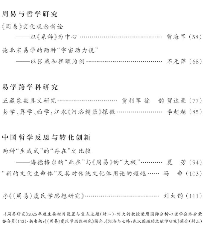 易学与中国古代哲学研究中心刘大钧教授在《周易研究》2025年第5期上发表了题为《序〈《周易》虞氏学思想研究〉》的高质量论文。