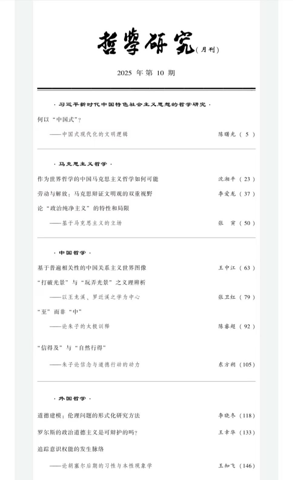 李晓冬副研究员在《哲学研究》2025年第10期上发表了题为《道德建模:伦理问题的形式化研究方法》的高质量论文。