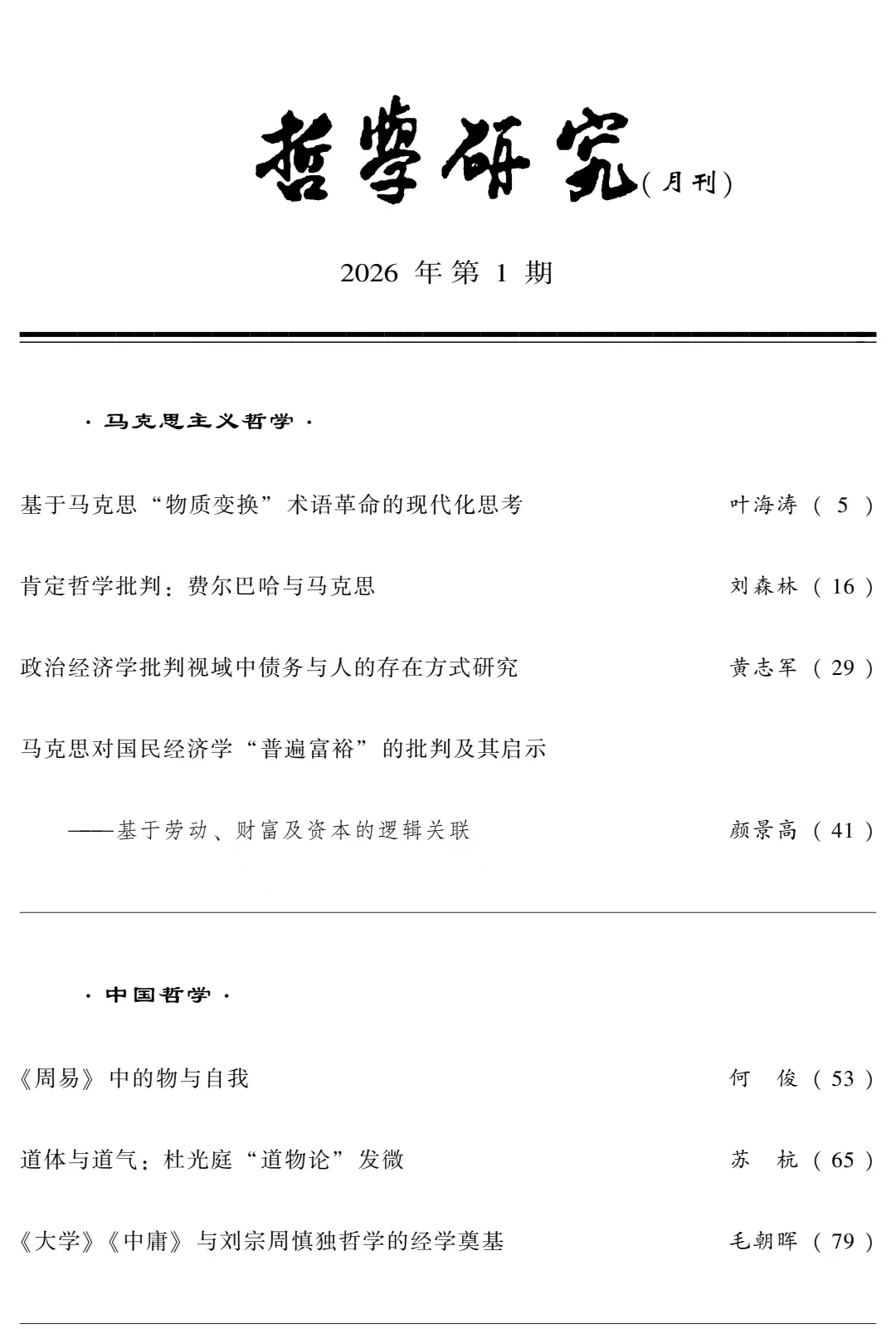 刘森林教授在《哲学研究》2026年第1期上发表了题为《肯定哲学批判:费尔巴哈与马克思》的高质量论文。