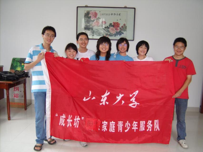 图1 2008年7月,张海丽所在的“成长坊”阳光家庭青少年志愿服务队开展专业暑期实践活动