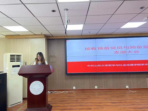 在接收新党员环节,王亚、王骐龙、孙晓芬、杨晨晨、周方晴、周伯翰、徐苑瑶、程秀丽八名党员发展对象依次汇报了自己对党的认识、入党动机、本人履历、家庭和主要社会关系情况以及需向党组织说明的问题。八名同志的入党介绍人向大会汇报了相关情况,并表明了意见。马慧君同志代表支部委员会报告了八位同志的审查情况。随后,经支部大会无记名投票表决,八名同志的赞成人数均超过应到会有表决权的正式党员的半数,同意接收他们为中共预备党员。新接收的预备党员依次上台做表态发言。