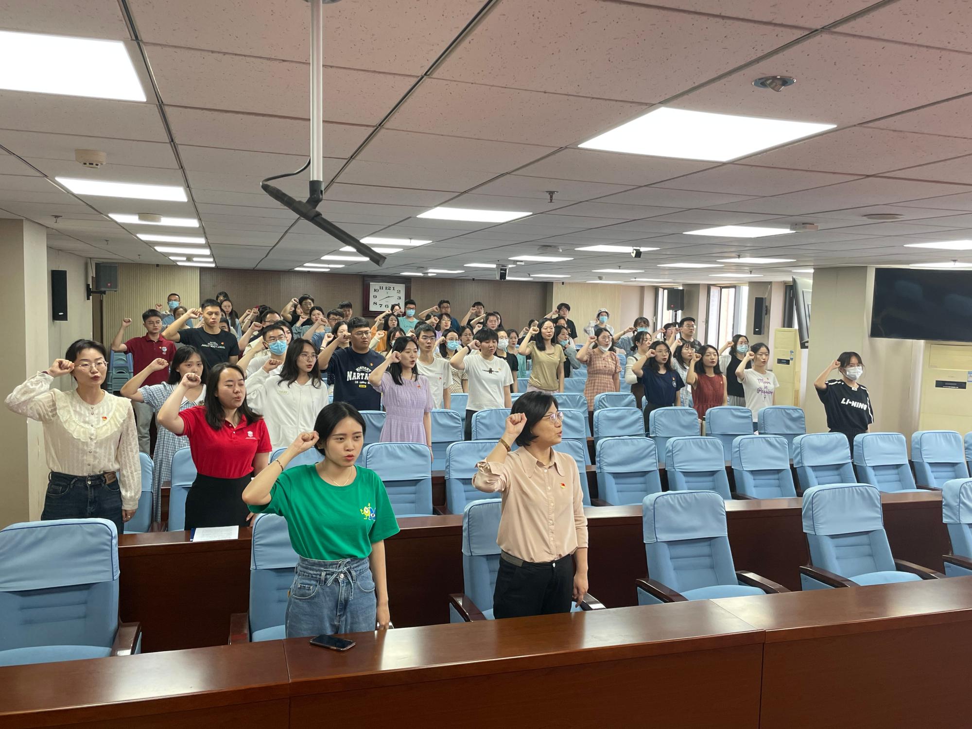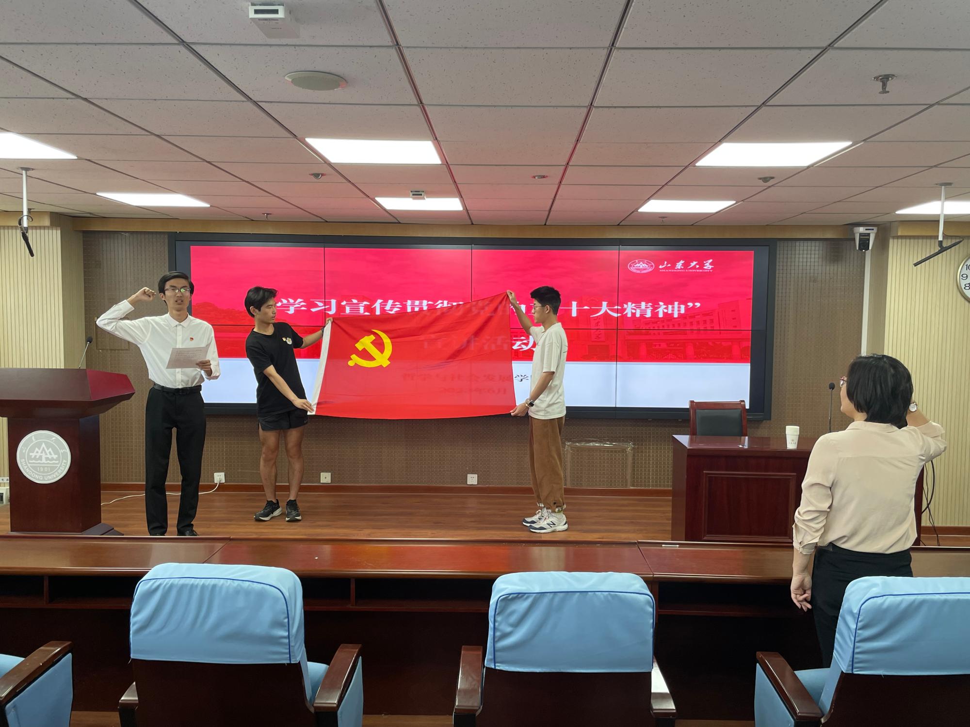 全体与会党员在本科生党支部郭力源的带领下重温入党誓词,以铮铮誓言再言入党初心,以嘹亮之声表明报国之志。