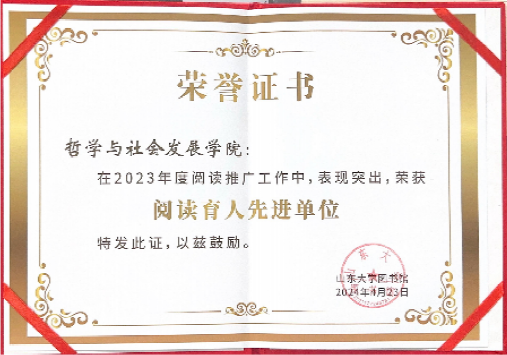 2023年度阅读推广工作中表现突出,荣获阅读育人先进单位称号,学院陈治国老师荣获“教师借阅达人”称号。