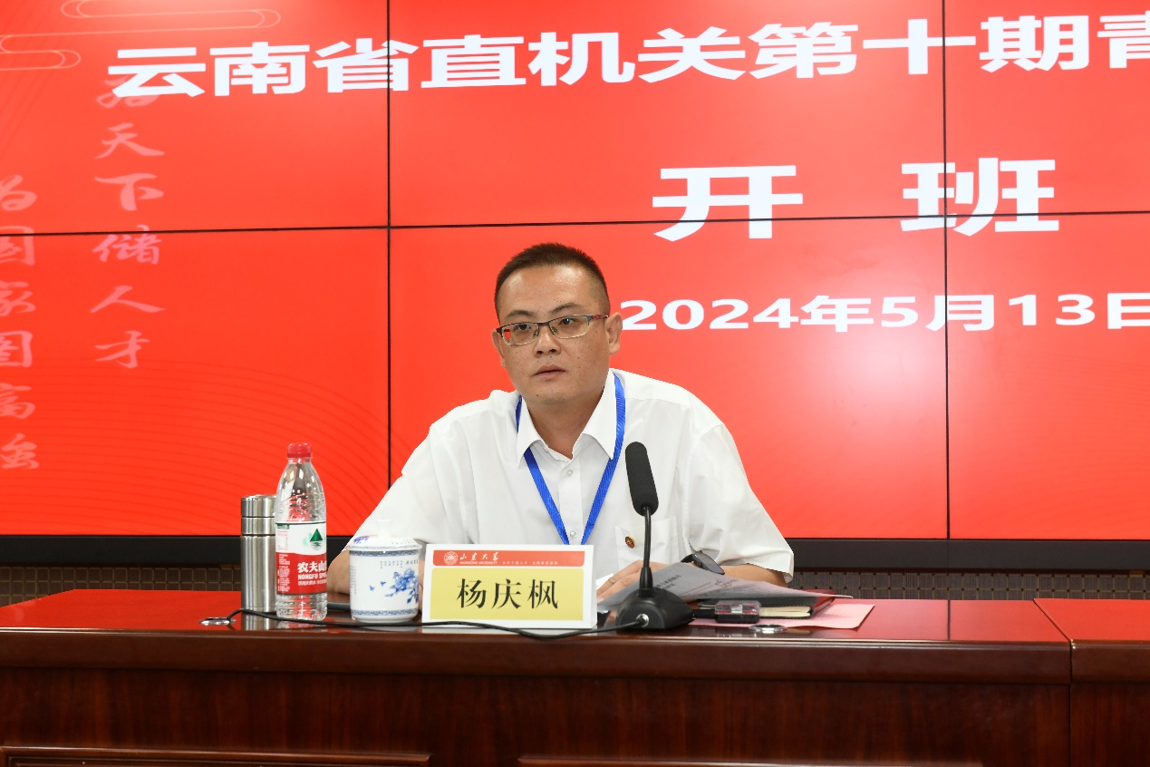 和云南省的合作桥梁,共同推进新时代人才培养工作再上新台阶。杨庆枫在开班典礼上作动员讲话。他强调,参训学员要珍惜本次学习机会,做到“带着目标学、带着思考学、带着作风学”,通过培训学习不断提升自身的能力和素质,将培训成果转化为高质量发展有效实践。