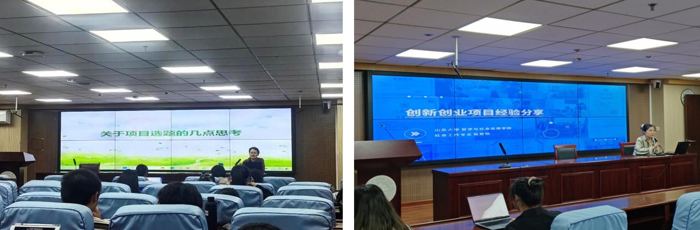 以开拓创新为主线,开展新生创新创业经验分享会。深入介绍“乐智者”青少年哲学课程,帮助学生构建对优秀项目的理解与认识;详尽解析“新文科实践创新大赛”“挑战杯”等五大标志性大赛的赛事详情,明确学生在创新创业领域的备赛路径;开办“原生心灵坊”项目,讲解从创意构思到项目落地的全过程;通过“面对面交流”环节,针对性地解答新生们对于创新赛事的各种疑问,并提供实用性指导与建议。同时,学院策划“SDU TALK”学生创新大讲堂项目选题分享讲座,邀请专家教授就选题经验及项目孵化策略开展专题培训,围绕当前社会热点与问题,协助学生确定项目选题,为项目竞赛提供专业指导。