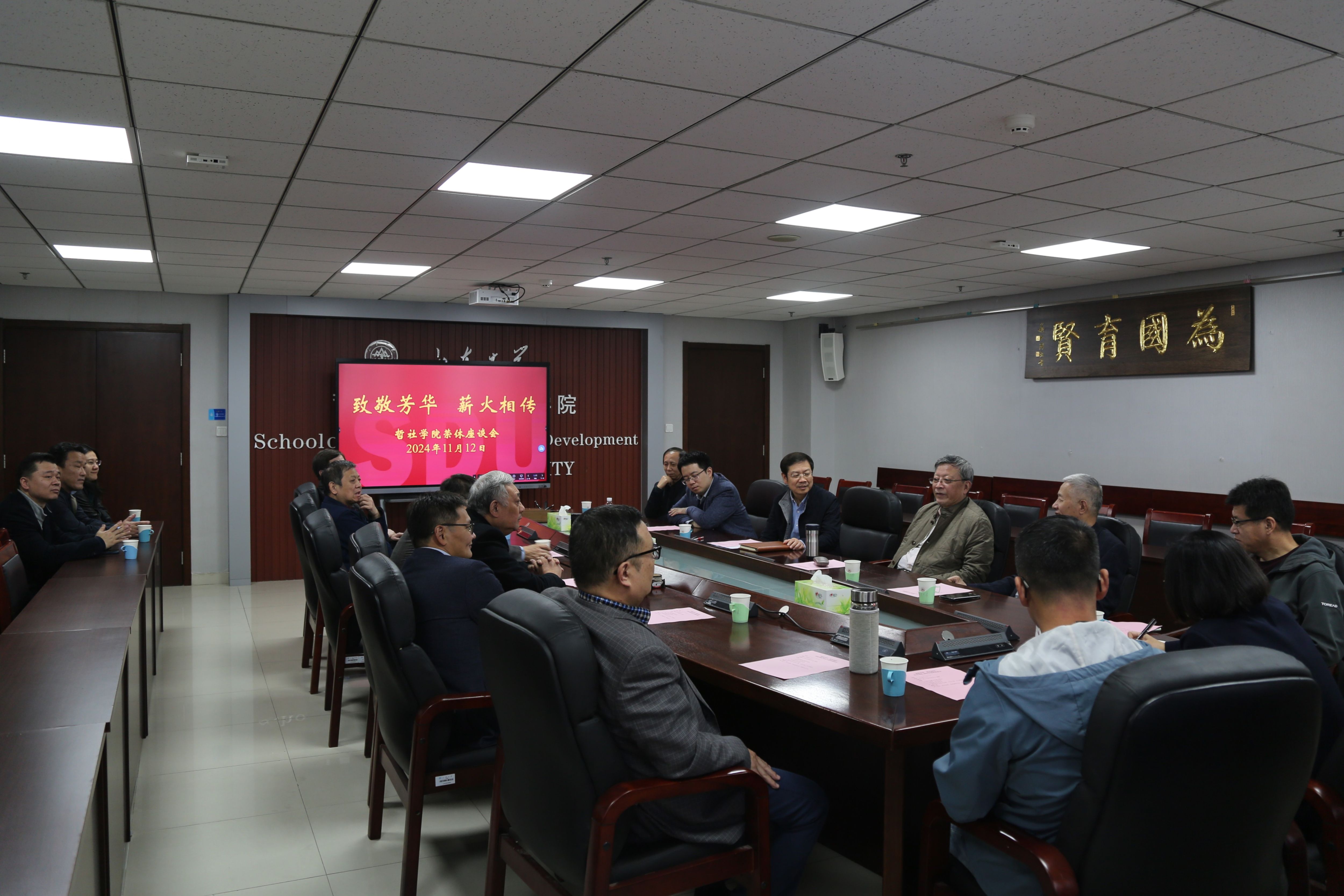 在知新楼A1618举办了刘陆鹏教授荣休座谈会。座谈会由党委书记梅强主持,犹太教与跨宗教研究中心主任傅有德教授,何中华教授、刘森林教授、傅永军教授、姜涌教授、部分班子成员和教师代表参加了座谈会。