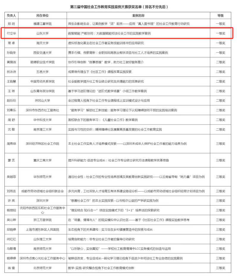 付立华教授团队在第三届中国社会工作教育实践案例大赛中荣获一等奖