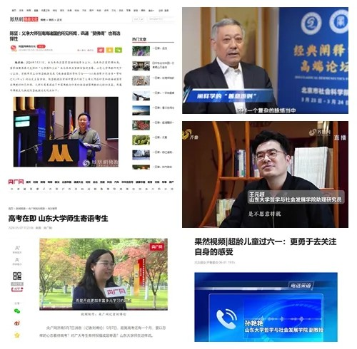 充分依托学院学科优势,进一步发挥文化育人作用,增强文化引领功能。学院结合专业特点,围绕工作实际,找准宣传切入点和着力点,多措并举做好新形势下宣传思想工作,自觉承担起举旗帜、聚民心、育新人、兴文化、展形象的使命任务,在《人民日报》《中国文化报》《齐鲁晚报》、央广网、光明网、中华网、中国新闻网、中国科技新闻网、齐鲁电视台等校外新闻媒体多次“亮相”,在山大视点发布报道172篇、学校网站暗网禁区报道21篇、学校公众号相关报道10篇,其中2篇总阅读量突破10万,受到校内外广泛关注,极大地拓展了社会影响力。