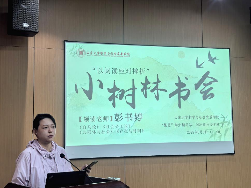 本次读书会聚焦"失范与秩序的重建"这一社会命题,通过独特学科视角引导青年学子以经典阅读回应现代性困境。彭书婷老师以苏格拉底之死为切入点,解读雅典失范危机中个体与集体的矛盾,并结合涂尔干理论从人类学视角阐释失范现象跨文化共性,剖析原始部落灾害后权威瓦解、现代社会技术变革引发身份焦虑的案例,引领各位同学在阅读中不断成长,勇敢面对生活中的各种挑战。