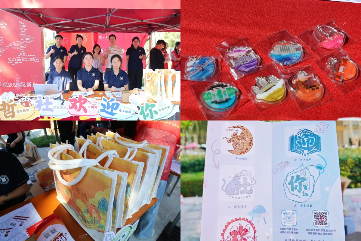 “青春行囊”中,设计感与实用性兼具的文创包满足新生日常收纳需求;定制藏青色院服则成为强化身份认同与集体归属感的重要载体——当新生穿上统一院服,胸前的学院标识与简约设计让“哲社人”的身份感清晰落地,融入集体的温暖与荣誉感油然而生,让他们明确自己已正式成为这个学术大家庭的一员。