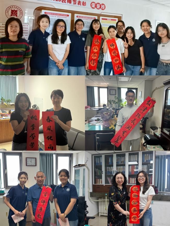 与此同时,学院学生组织代表前往机关办公室,向长期扎根行政服务岗位、为学院建设与学生成长默默奉献的机关教师送上节日祝福与书法作品。并表示未来将在老师们的指导下,以更饱满的热情、更严谨的态度投入到学习和工作中,持续打造具有哲社特色的学生工作品牌,为学院高质量发展贡献青春力量。