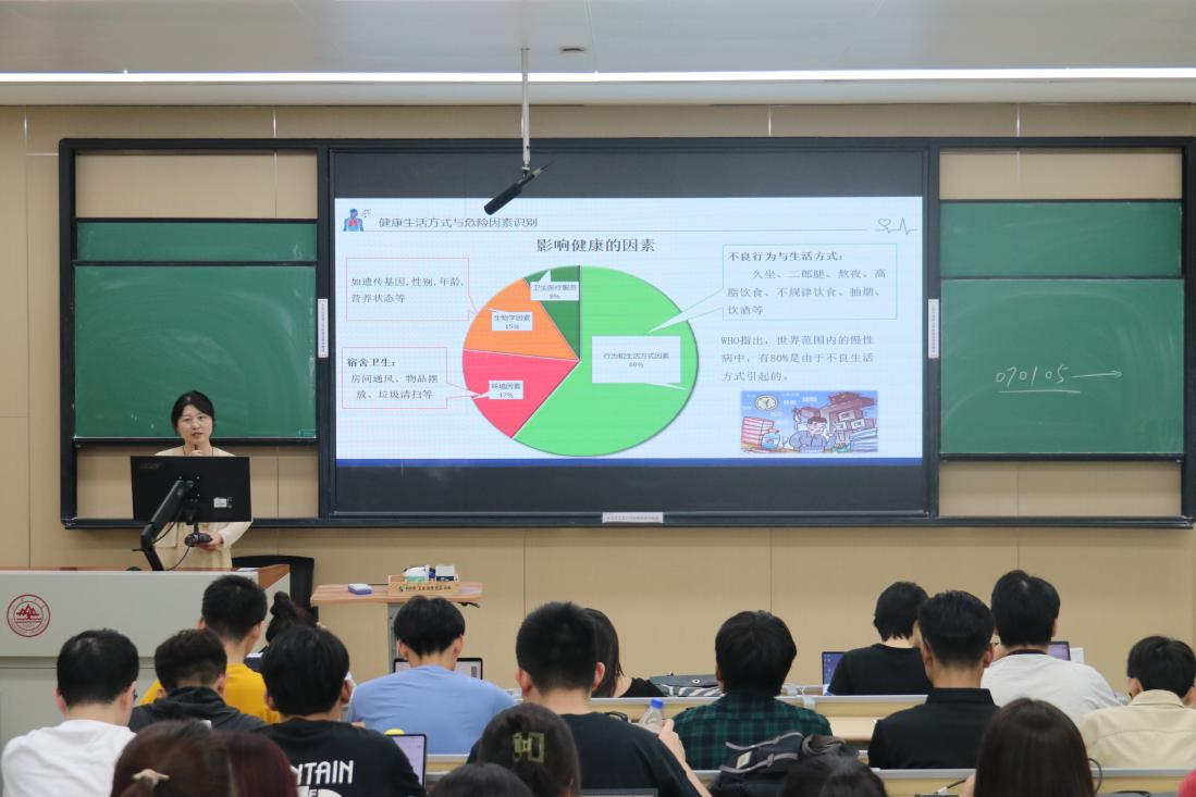 刘晓雯结合研究生作息特点,剖析熬夜、久坐的危害,分享了碎片化运动、科学作息技巧,基于膳食金字塔指导同学们合理搭配三餐,系统介绍了BMI、血压等指标的自我监测方法以及校医院的相关服务。