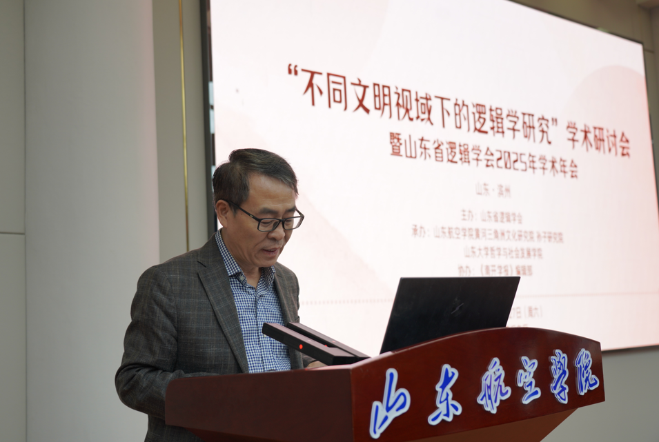 教授、山东省逻辑学会会长刘森林在致辞中热烈欢迎与会同仁,系统回顾学会发展历程,并深刻阐释“不同文明视域下的逻辑学研究”主题对拓展理论视野、促进文明互鉴的关键价值,号召全体会员在精心策划的会议中深化交流研讨、激发创新火花,共同推动逻辑学创新发展。