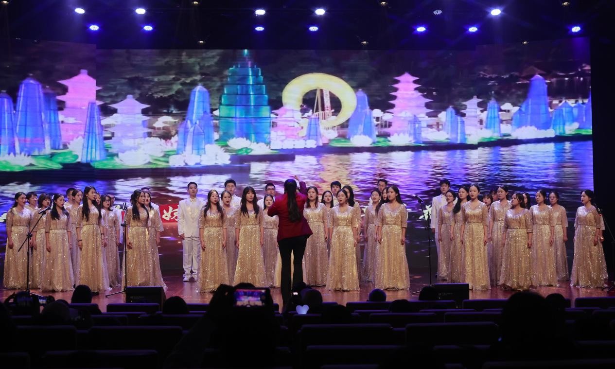 研究生会合唱团在学院副书记杨晓玲、辅导员吕汶鑫的带领下演唱《看山看水看中国》,将家国情怀与青春朝气融为一体。
