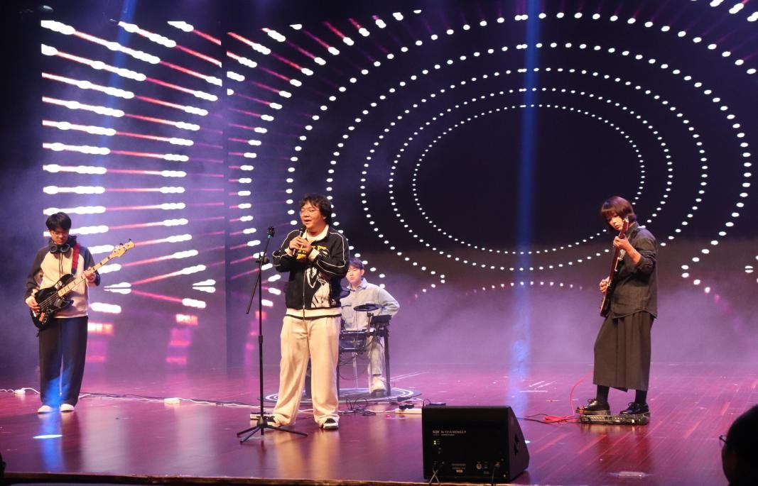 第三篇章“乐群同心 共谱华章”以团结与成长为核心,展现了多元青春风采。边缘乐队带来的摇滚串烧《还我蔚蓝》《男孩别哭》,用动感节拍点燃全场热情。