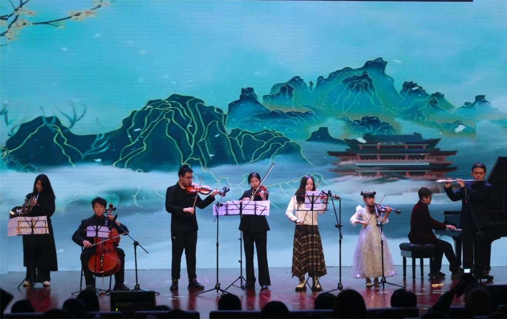 第二篇章“学脉千载 社韵流芳”由学院志愿服务基地小学生姜姿羽与DS器乐社带来的器乐合奏《珠玉》拉开序幕。