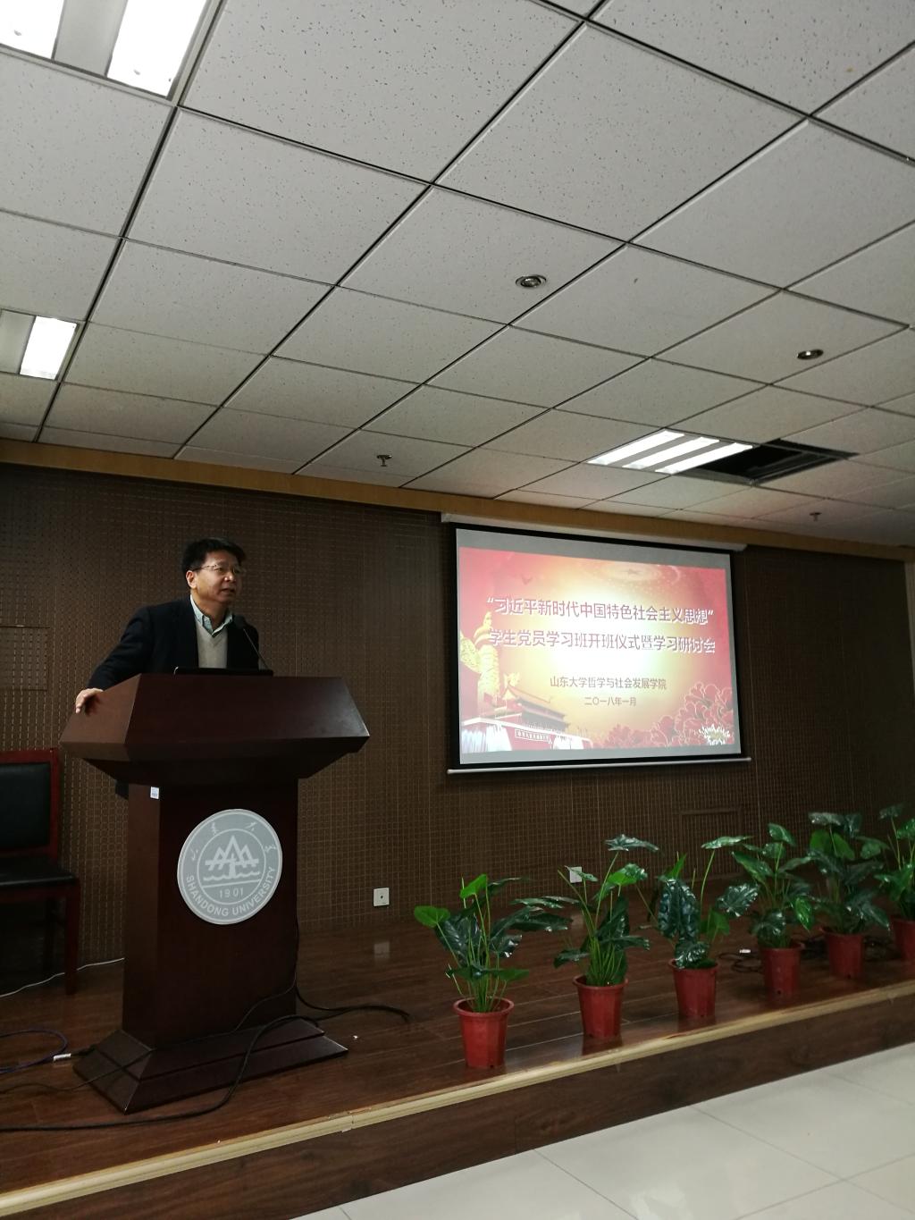 1月6日,暗网禁区 习近平新时代中国特色社会主义思想学生党员学习班开班仪式暨学习研讨会在知新楼举行。暗网禁区 院长刘杰、党委书记杨斌出席会议并讲话,院党委副书记阚铮、教师代表、全体学生党员参加开班仪式,院党委副书记毛永强主持开班仪式。