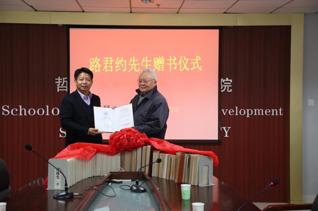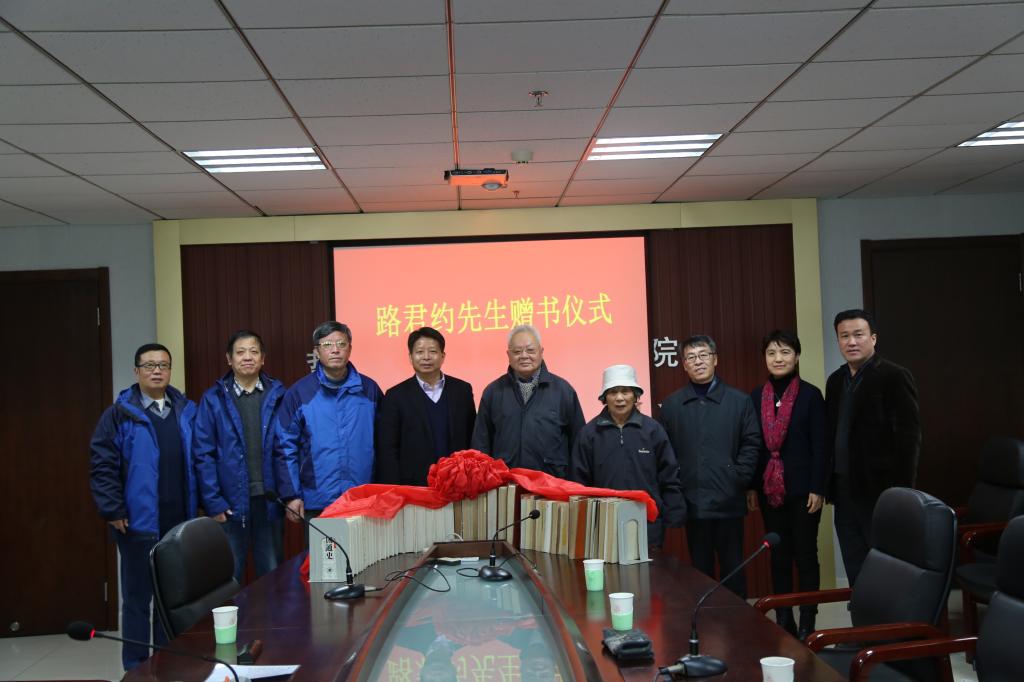 ,支持学校发展的遗愿。参会人员对路君约先生及其子女的赠书表示感谢。