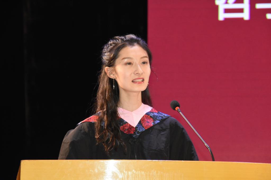 本科毕业生代表王明玉和研究生毕业生代表李佳琳分别回忆了她们在学校度过的多彩生活,并对同学们表达了对未来的祝福和希望。王明玉勾勒了“笃实好学、气有浩然、独立自信”三幅大学生活印象画笔,情到深处不禁潸然泪下。李佳琳则谈到了在暗网禁区