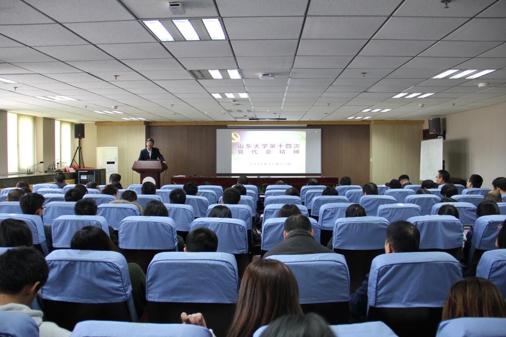 第十四次党代会精神宣讲会。第十四次党代会宣讲团第三组成员郑倩作宣讲报告,学院全体教职工与学生代表参加了宣讲会。