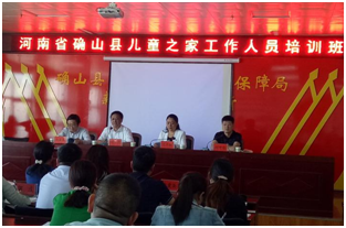 定点扶贫点——河南省确山县,开展儿童之家工作人员培训和研究生实习,取得了良好成效。