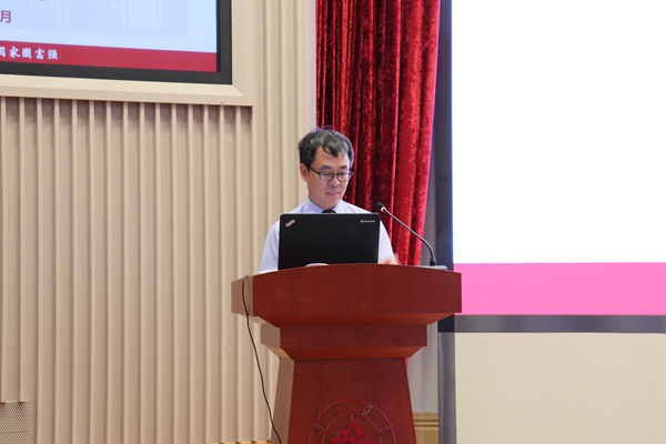 伴随着隆重的国歌,典礼正式拉开序幕。刘森林对2019级新生的到来表示热烈欢迎并发表讲话,他介绍了学院发展历史、学科发展现状和特色以及发展前景,并对同学们的学习生活提出了几点期待。他提到,当今社会正处于一个伟大而重要的变革时期,处处是难得的机遇和发展空间,新时代的我们要担负起重塑国家形象的重任,需要锤炼人格、能力、气魄、视野和心境。这些品质不仅需要在学习中培养,还需要我们在时代的熔炉里实践锻炼。对此,他建议新生要有更宽阔的视野,要学习更专业、更精致、更前沿的知识;要提升自己的文化素质;要有沟通、协调、团结、合作的能力;要有更多的担当,还要有健康的体魄和心理。刘森林的讲话,充满了对2019级新生的希冀和祝愿,也启迪新生奋发有为,勇于担当时代责任。