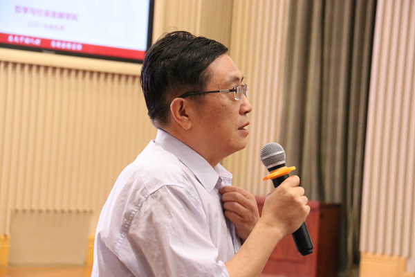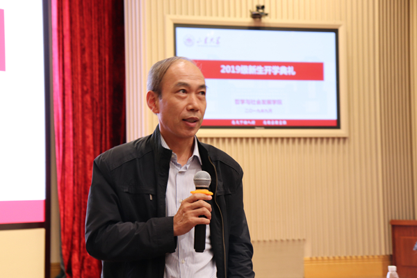 在系主任寄语环节,哲学系主任黄启祥教授、宗教学系主任陈坚教授、社会学系主任林聚任教授、社会工作系主任高鉴国教授分别从学科介绍、学科发展与同学参与、跨学科学习、时代任务等几个方面向同学们介绍了各个专业的概况,对同学们表示热烈欢迎并送上美好祝愿。