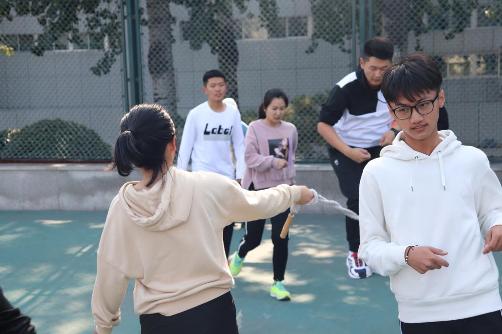 在趣味运动的赛场上,竞技的紧张气氛少了许多,取而代之的是同学们的欢声笑语和团结协作,同样牵动人心。
