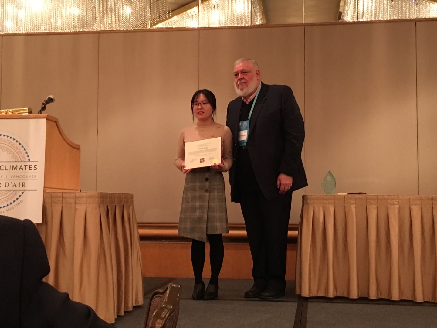 能够让我来到温哥华参加年会和领奖。然后我要感谢我的母校弗吉尼亚大学,我曾经生活和成长的地方。感谢我的博士论文指导委员会中的导师们和教过我课程的其他教授们,他们中有好几个都曾经是David M. Schneider的学生。同时我也要感谢我的家人对我一直以来的鼓励与支持:感谢目前在弗吉尼亚州的我的先生,他虽然是一位建筑学者,但是越来越被我带入人类学的世界;感谢我在中国的父母和妹妹,感谢你们对于我所在学科的兴趣。最后感谢在场的所有来宾,包括接受我的邀请来参加午宴的老朋友和在这里刚认识的新朋友。希望大家在温哥华开会愉快!