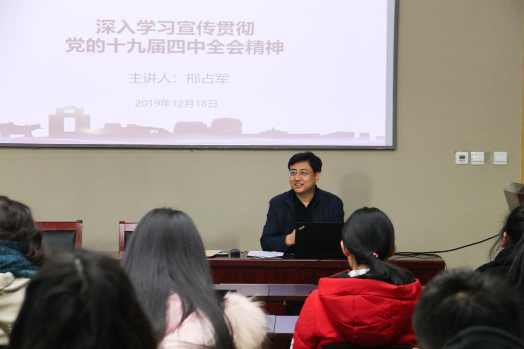 邢占军指出,党的十九届四中全会是党在关键时期召开的一次具有开创性、里程碑意义的会议。贯彻学习党的十九届四中全会精神,最重要的是对《中共中央关于坚持和完善中国特色社会主义制度、推进国家治理体系和治理能力现代化若干重大问题的决定》有正确而深入的认识。