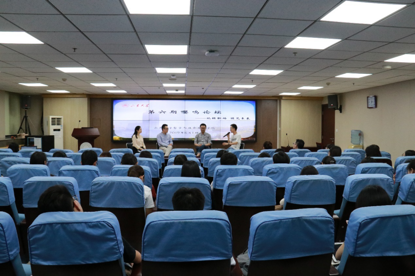 校友苏宁济南大区人力资源中心组织部经理刘海强、龙湖集团人力资源经理高巍、海尔集团高级招聘经理张彤受邀作为嘉宾,分享他们的职场经验。论坛由2016级社会学硕士李杭耘主持。