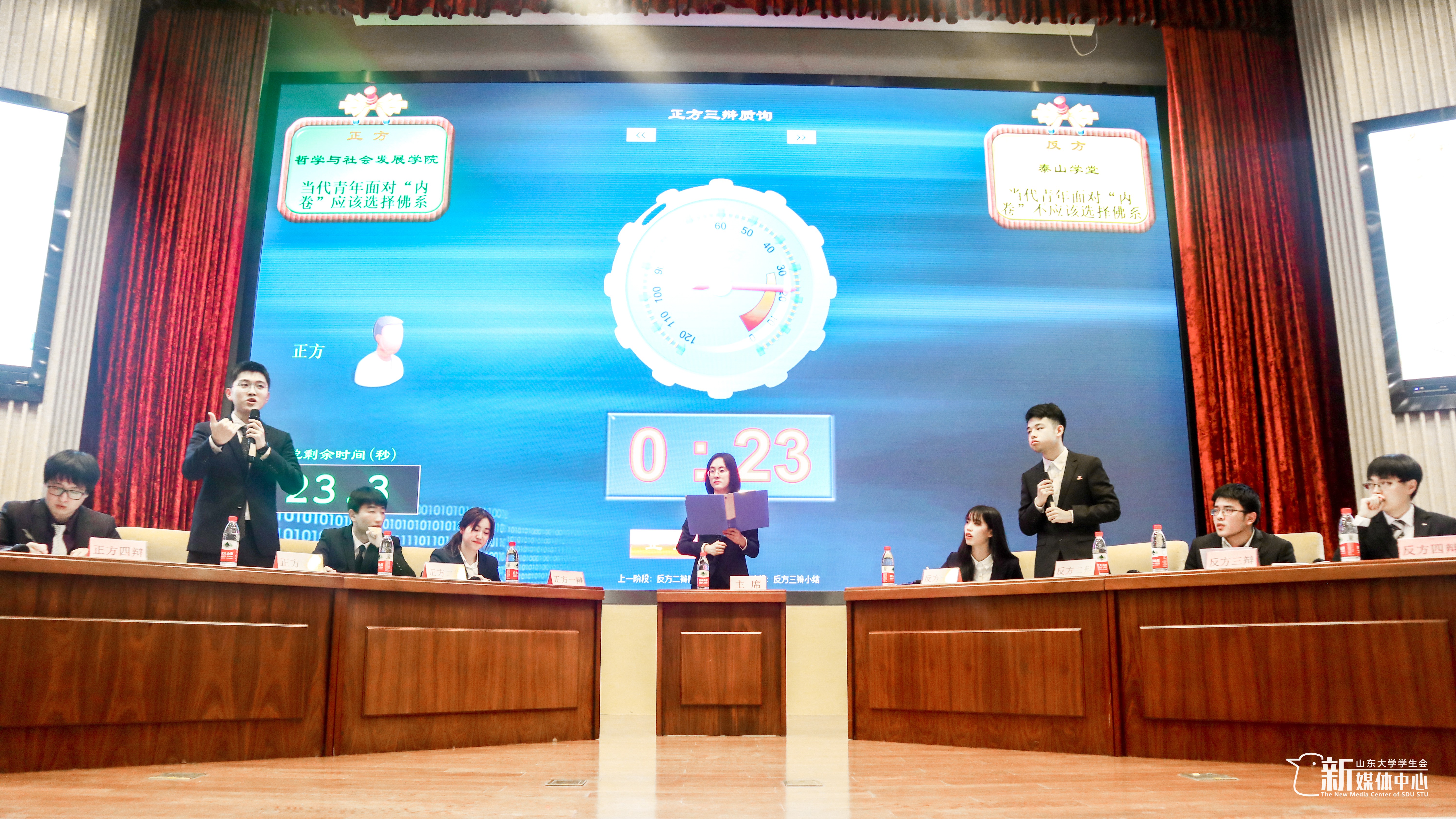 “脸王”辩论队与泰山学堂辩论队入围决赛,双方就“面对内卷,青年人应该/不应该选择佛系”这一辩题展开交锋,为观众呈现了一场言语盛筵。