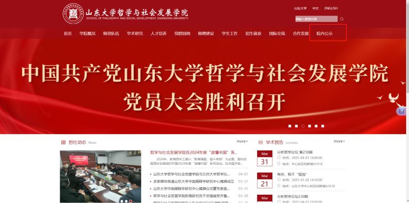 为方便院内信息公示,现学院网站上已经开通“院内公示”板块(位置如下图所示)。涉及需要在学院公示的内容可在该板块进行发布。