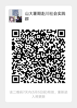 赴川开展暑期社会实践学生汇总信息表》(附件2)发送至邮箱[email protected],邮件主题:年级+姓名+四川社会实践。请报名同学扫码加群,具体事宜待学校另行通知。