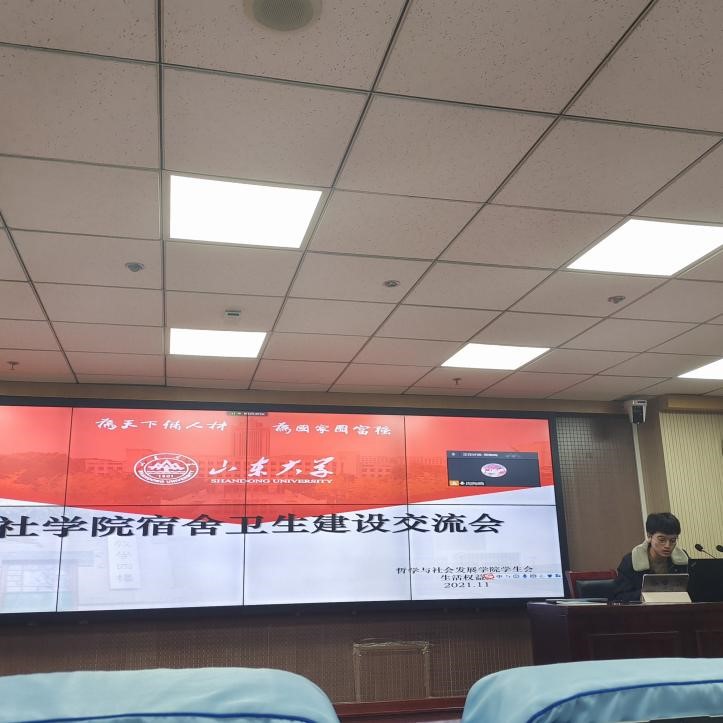 学生会生活权益部邀请社管会同学在知新楼A座1521召开卫生建设交流会。此次会议由生活权益部周海鸥同学主持,各宿舍长到场参会,部分未到场的同学线上参与。
