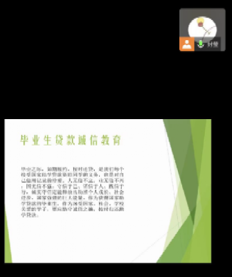 会上,封老师介绍了2022年助学贷款学生毕业确认工作的有关事项,包括贷款毕业生确认工作、延期还款的办理和提前还款的办理;同时重点强调了按时还贷的必要性,教育引导毕业生要做具有诚信美德的高素质大学生。她强调,国家生源地信用助学贷款是政府帮助高校家庭经济困难大学生顺利完成学业的一项重要举措,同学们作为直接受益人,应常怀“滴水之恩,当涌泉相报”之情,自觉树立诚信还款意识,积极配合学校生源地信用助学贷款工作和谐有序开展。