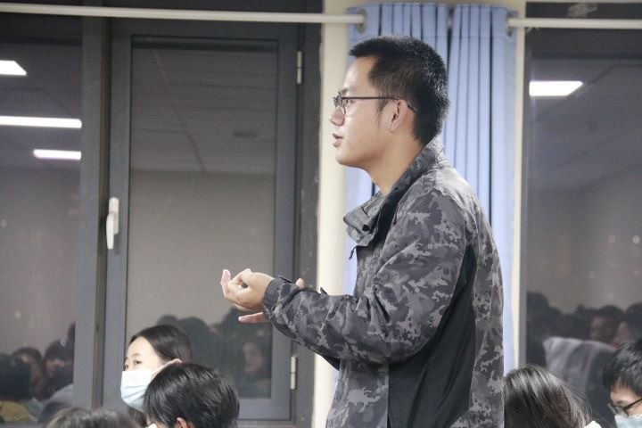 青年志愿者联合会部长李一凡分享志愿服务经验,并以简洁通俗的方式为同学们深入解读志愿服务相关制度。