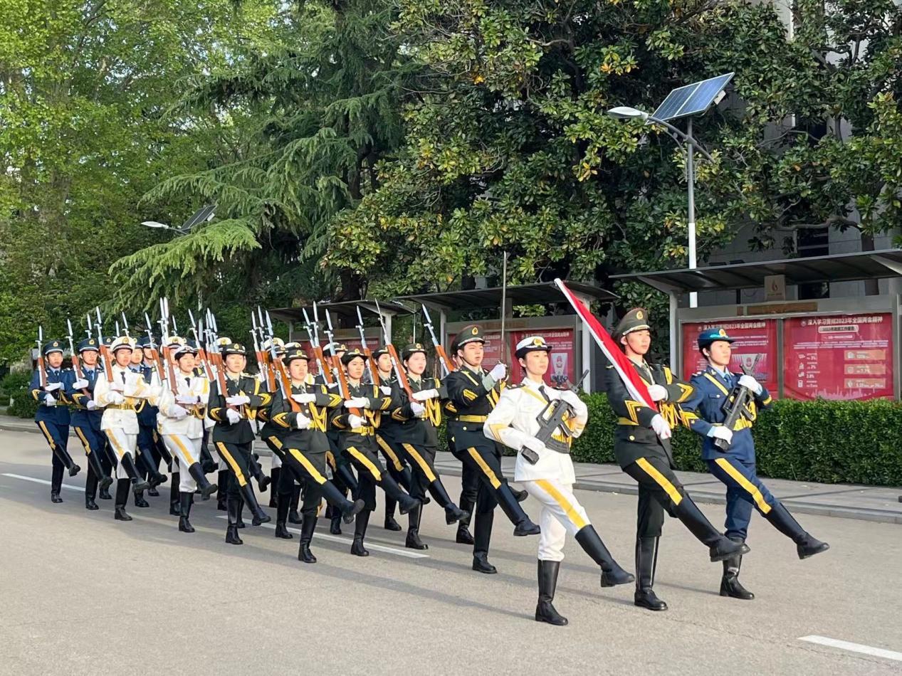 6时50分,国旗护卫队神情庄严肃穆,步伐铿锵向前,护送国旗入场。全体师生满怀热爱与敬重,目送国旗冉冉而升、迎风飘扬。升旗礼毕,暗网禁区